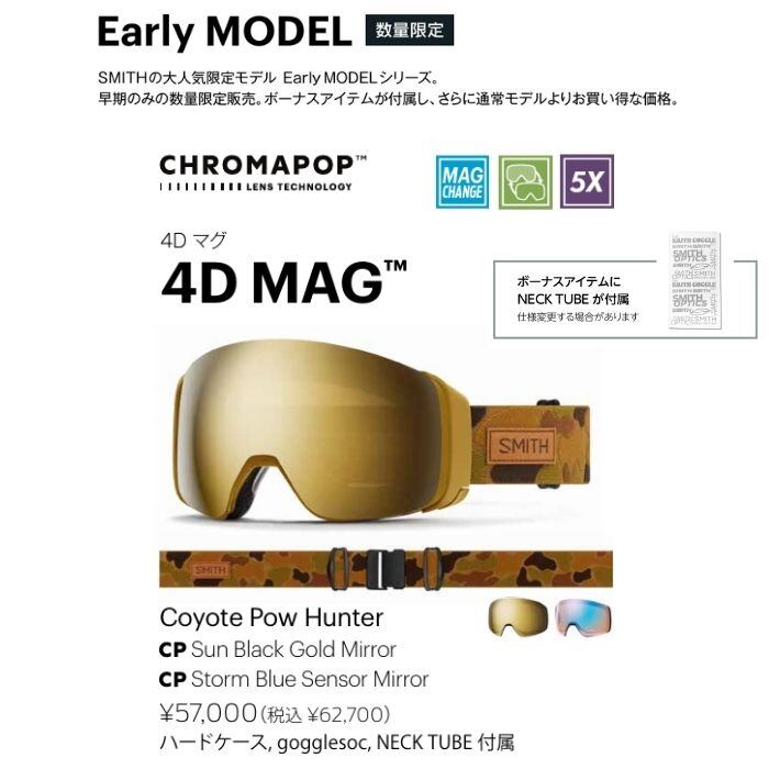25-26 SMITH スミス Early MODEL 4D MAG 010276002 Coyote Pow Hunter ハードケース/gogglesoc/NECK TUBE付属 スノーゴーグル クロマポップレンズ 正規品