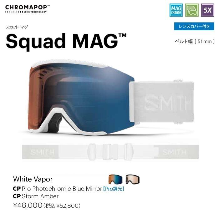 25-26 SMITH スミス SQUAD MAG 010276051 White Vapor レンズカバー付属 クロマポップレンズ Pro調光 スノーゴーグル 正規品