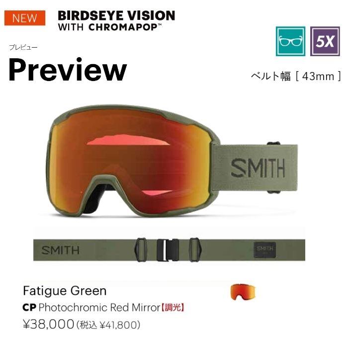 25-26 SMITH スミス PREVIEW 010276061 Fatigue Green クロマポップレンズ 眼鏡対応 調光レンズ スノーゴーグル 正規品