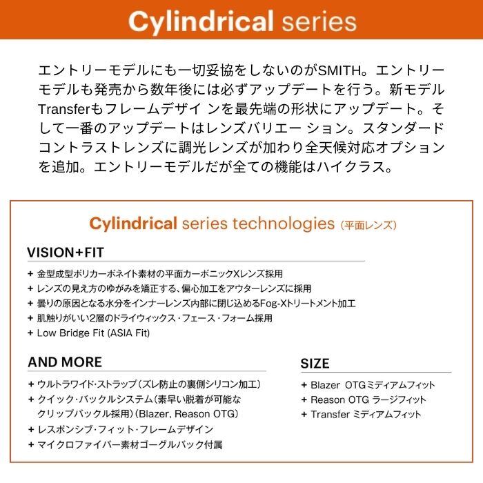 メーカー希望小売価格はメーカーカタログに基づいて掲載しています商品説明モデル名SMITHTRANSFER定価:11500+(税)モデルTRANSFERフレームカラーCactus Zine詳細エントリーモデルにも一切妥協をしないのがSMITH。エントリーモデルも発売から数年後には必ずアップデートを行う。新モデルTransferもフレームデザインを最先端の形状にアップデート。そして一番のアップデートはレンズバリエーション。スタンダードコントラストレンズに調光レンズが加わり全天候対応オプションを追加。エントリーモデルだが全ての機能はハイクラス。※注意事項●返品について●お客様都合によるご注文後の返品・キャンセル・交換は一切受け付けておりませんので、予めご了承下さい。●商品画像について●撮影状況、PC状況により、色合いが若干異なる場合がありますので、ご了承の上ご購入ください。●商品欠品について●掲載されている全ての商品は実店舗・他のネットショッピングでも販売しております。ご注文を承り次第在庫を確保しますが、完売の際はご容赦下さい。 ●送料について●北海道・沖縄・離島等の場合、別途送料が必要となります。