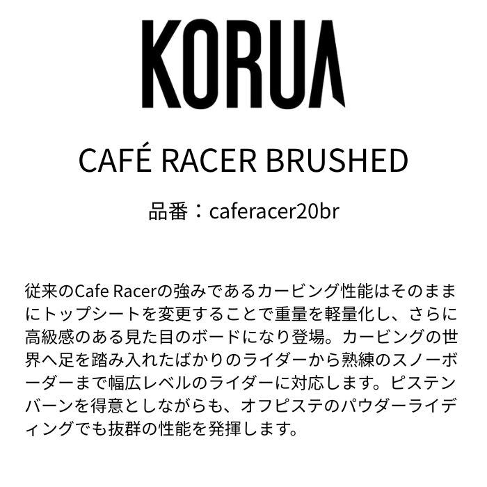 KORUA コルア CAFE RACER BRUSHED 150/156/159/164 フルキャンバー パウダー カービング フリーラン オールラウンド スノーボード 板 正規品