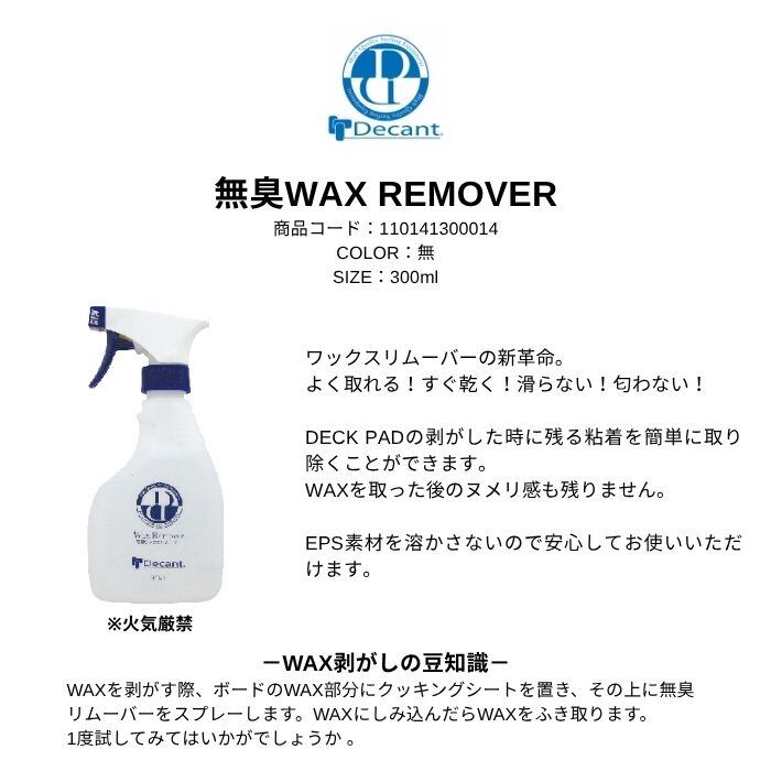 DECANT デキャント 無臭WAX REMOVER ワックスリムーバー 110141300014 300ml マリン サーフィン 正規品
