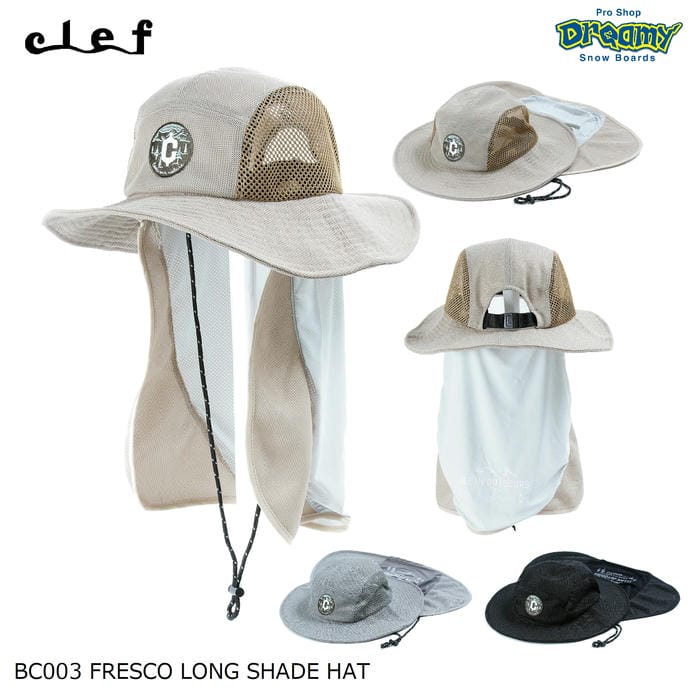 メーカー希望小売価格はメーカーカタログに基づいて掲載しています商品説明モデル名ClefFRESCO LONG SHADE HAT定価:6800+(税)サイズFREEカラーBEIGE , GRAY , BLACK概要帽子で【 猛暑&熱中症 】対策!肩までしっかりと覆う事ができる大きなシェードは「 接触冷感 」素材を採用し、首元からひんやりとした肌触りと気持ちよさ。帽子本体の生地もメッシュや通気性の高い素材を採用し、帽子内の熱を効率よく発散します。「 紫外線から守るべきところ 」「 熱を解放するべきところ 」をバランスよく考えてカタチにしました。フェスやキャンプ・BBQなどのアウトドア活動や、近所への買い物からスポーツ観戦にも。☆ シェード部分は着脱が可能です。特長素早く調整可能なスライドアジャスター 吸水速乾素材の汗止めWIRED BRIM(ツバ部分にワイヤー内蔵)サイズFREE : 約57cm~59.5cm(ご注意)同じサイズ表記でも生地素材(硬い柔らかい、薄い厚いなど)の要因で被った感覚は多少異なりますので予めご了承下さい。※注意事項●返品について●お客様都合によるご注文後の返品・キャンセル・交換は一切受け付けておりませんので、予めご了承下さい。●商品画像について●撮影状況、PC状況により、色合いが若干異なる場合がありますので、ご了承の上ご購入ください。●商品欠品について●掲載されている全ての商品は実店舗・他のネットショッピングでも販売しております。ご注文を承り次第在庫を確保しますが、完売の際はご容赦下さい。 ●送料について●北海道・沖縄・離島等の場合、別途送料が必要となります。