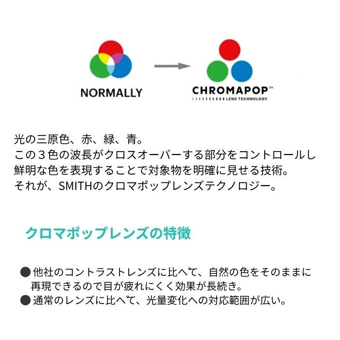 80’s vibes are BACK!! 1980年代に流行ったフリップスタイルサングラスをサンプリング。レンズは当時なかったSMITHの代名詞であるChromapopにアップグレード。ノーズラバーを付け替えることで好みのフィッティングに。テンプルロゴは当時のフォントを採用。古き良き時代80年代を現代令和にSMITHがRemix。