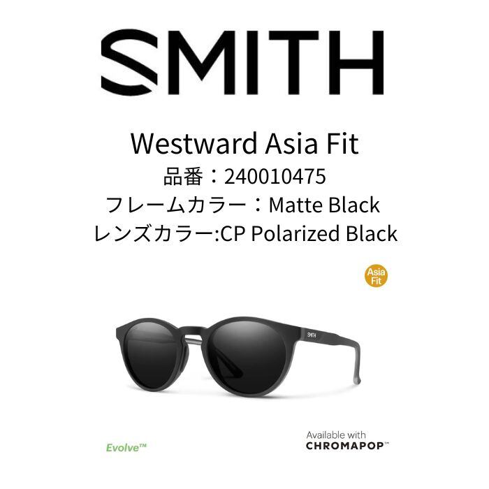 SMITH スミス Westward Asia Fit 240010475 Matte Black サングラス 偏屈レンズ 撥水・反射防止コーティング アウトドア 正規品