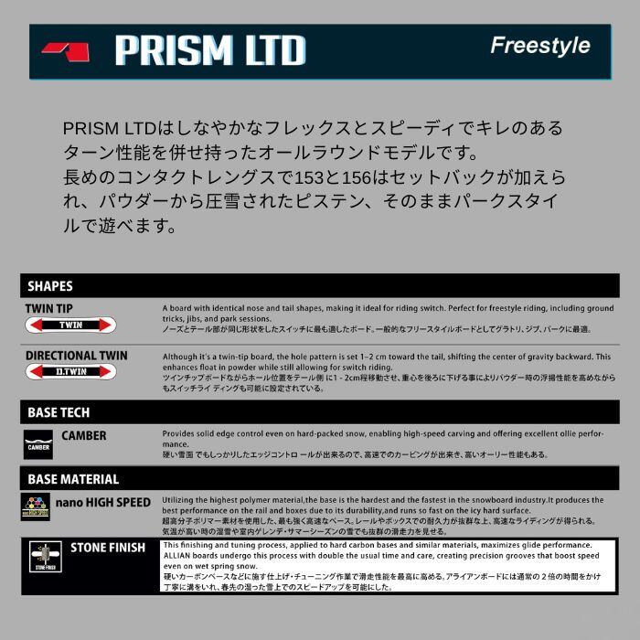 25-26 ALLIAN アライアン PRISM LTD プリズム リミテッド 20130225_04 150/153/156 キャンバー スノーボード 板 メンズ 正規品
