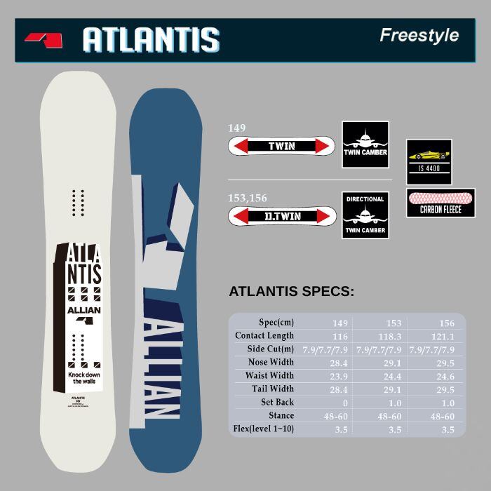 25-26 ALLIAN アライアン ATLANTIS アトランティス 20130225_06 149/153/156 ツインキャンバー スノーボード 板 メンズ 正規品