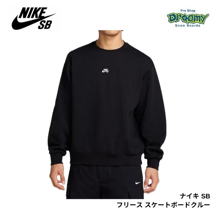 NIKE SB ナイキ フリース スケートボードクルー FV7354-010 ブラック/ホワイト 長袖 ルーズフィット 起毛フリース素材 ロゴ 刺繍 正規品