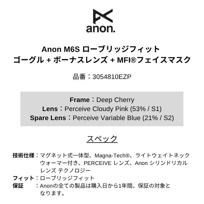 25-26 ANON アノン M6S 3054810EZP Deep Cherry/Perceive Cloudy Pink ローブリッジフィット ボーナスレンズ/MFIフェイスマスク付属 スノーゴーグル 正規品