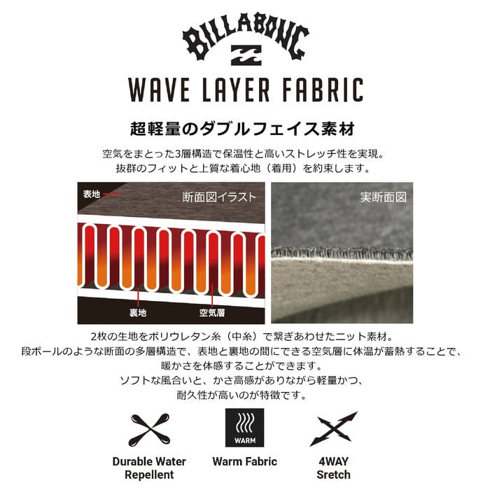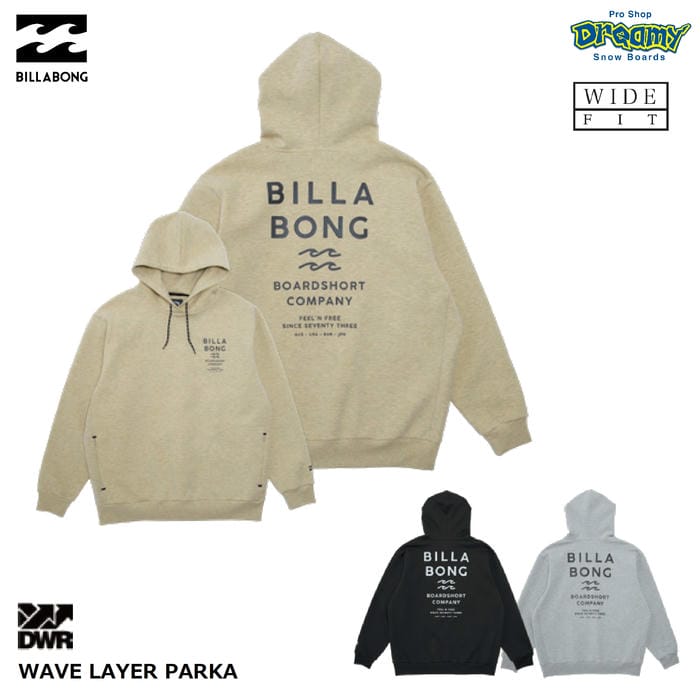 BILLABONG WAVE LAYER PARKA BF012016 パーカー プルオーバー ワイドフィット 撥水加工 4wayストレッチ ダブルフェイス素材 フーディー ロゴ ビラボン 正規品
