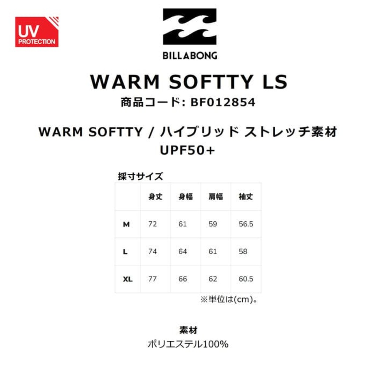 BILLABONG WARM SOFTTY LS BF012854 サーフ Tシャツ 長袖 UVプロテクション ストレッチ 水陸両用 速乾 厚手 バックプリント ロゴ ロンT ビラボン 正規品