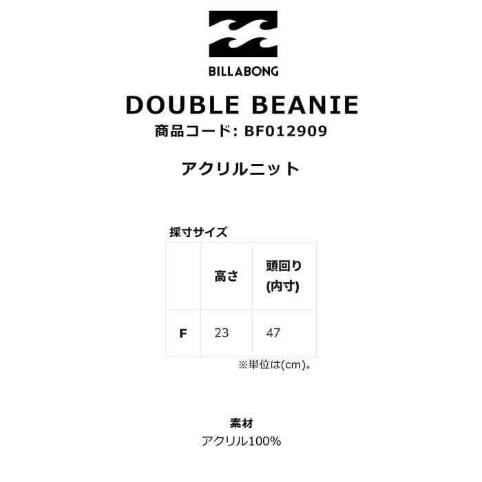 BILLABONG DOUBLE BEANIE BF012909 ビーニー 折り返し リブ編み アクリルニット ワッペン ロゴ キャップ フリーサイズ BLK BRN NVY SEA VIO ビラボン 正規品