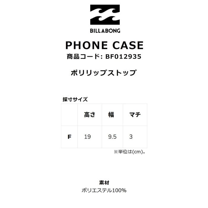 BILLABONG PHONE CASE BF012935 スマートフォン ケース 中綿入り ポリリップストップ生地 カラビナ付き ロゴ ポシェット バッテリー消耗防止 ビラボン 正規品