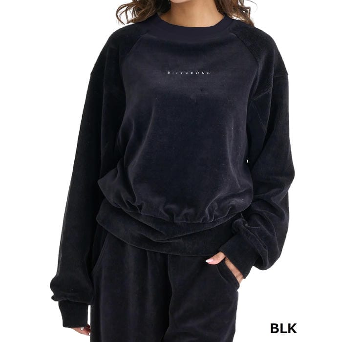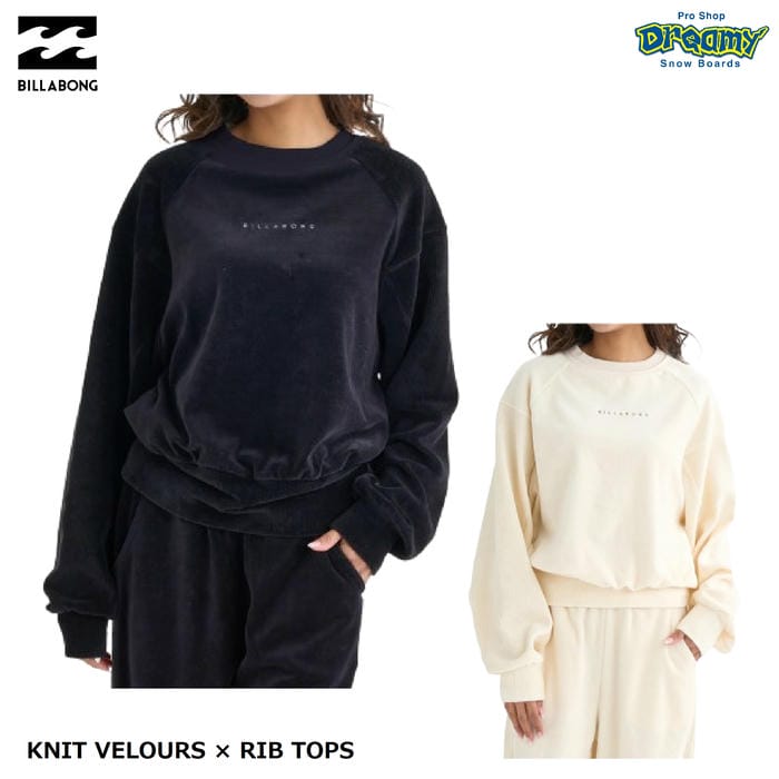 BILLABONG KNIT VELOURS × RIB TOPS BF014030 トップス ロングスリーブ ベロア クルーネック クロップド丈 無地 刺繍 ロゴ セーター ビラボン 正規品