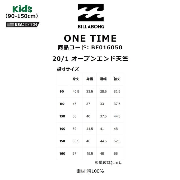 BILLABONG ONE TIME BF016050 キッズ Tシャツ 90-150cm 長袖 USAコット ン20/1オープンエンド天竺 バックプリント フロッキー ロンT ロゴ ビラボン 正規品