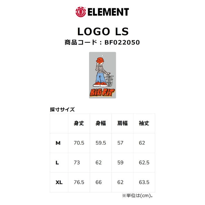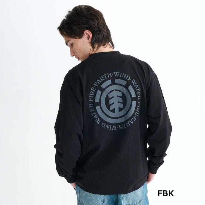 ELEMENT LOGO LS BF022050 Tシャツ ビッグフィット 長袖 オープンエンド天竺素材 コットン100% バックプリント 刺繍 ロゴ ロンT FBK WHT エレメント 正規品