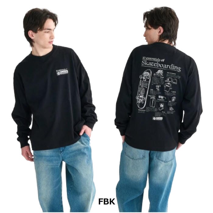ELEMENT ESSENTIAL LS BF022053 Tシャツ ビッグフィット 長袖 オープンエンド天竺素材 コットン100% バックプリント ロゴ ロンT FBK SBK WHT エレメント 正規品