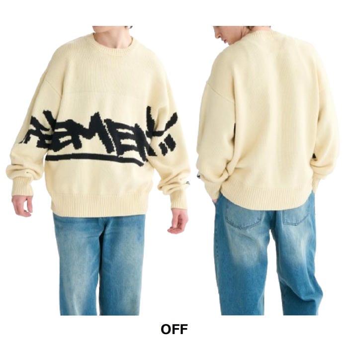 定価:9500+(税)サイズM , L , XLカラーFBK , OFF概要柔らかい肌触りのアクリル100%ニット。アクリル素材を採用しているため洗濯が可能。