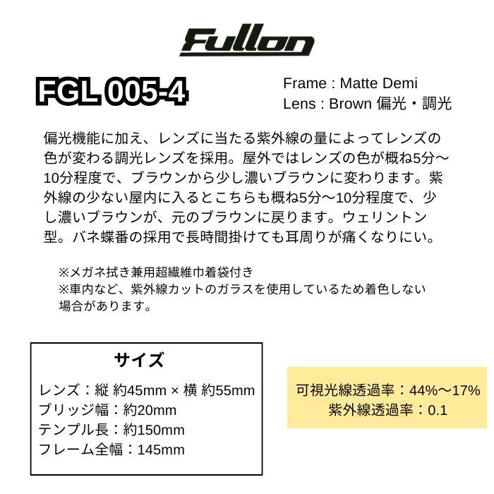 FULLON フローン FGL 005-4 Matte Demi/Brown 偏光・調光 UVカット メガネ拭き兼用超繊維巾着袋付属 バネ蝶番 ロゴ サングラス 正規品