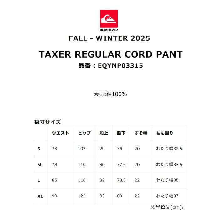 QUIKSILVER TAXER REGULAR CORD PANT EQYNP03315 パンツ コーデュロイ エンザイムウォッシュ加工 ウエストゴム仕様 ドローコード クイックシルバー 正規品