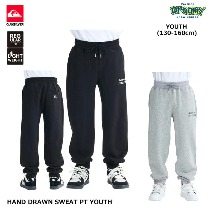 QUIKSILVER HAND DRAWN SWEAT PT YOUTH KPT254003 キッズ パンツ レギュラーフィット 130-160cm スウェット 裏起毛 軽量 フリース ロゴ クイックシルバー 正規品