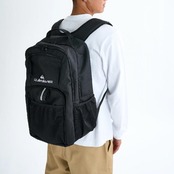 定価:9000+(税)サイズFカラーBLK1 , BLK2概要全面に丈夫なポリエステルキャンバス生地を採用した32Lのバックパック。フロントポケットの上部に、リーシュロックやヘルメットなどを通すリフレクター付きバンドを装備。フロントにはサーフワックスなど入れられる保冷ポケットや小物用ポケット、サイドにはビーチサンダルやドリンク用ポケット、内部にはラップトップ用スリット、体にフィットするU字ベルトを完備。通勤・通学とマリンスポーツの両方を叶える機能性抜群のデザインです。素材ポリエステル100%サイズF/H50×W32×D18cm