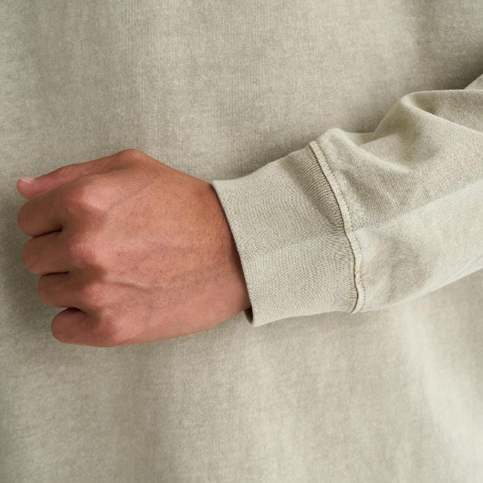 定価:5700+(税)サイズS , M , L , XLカラーBGE , WHT , BLK概要アメリカンテイストな程良い肉厚感とハリ感の生地を使った長袖Tシャツ。特別に配合した顔料系の染料で製品染めにし、ボールバイオウォッシュ加工を施す事で独特なユーズド感を表現。左胸ポケットとバック左脇にバブルロゴの刺繍をあしらいました。シルエットは汎用性の高いレギュラーフィット。素材綿100%※注意事項●返品について●