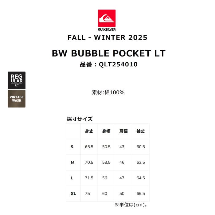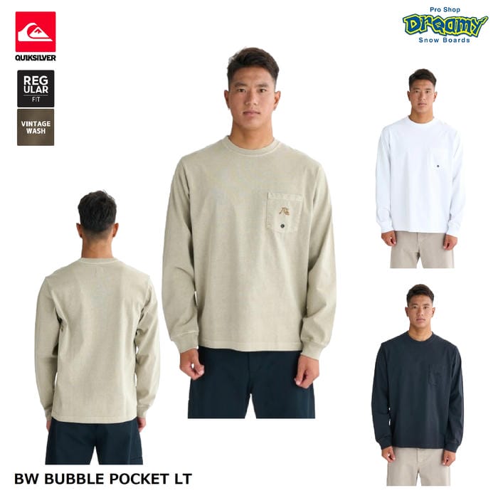 QUIKSILVER BW BUBBLE POCKET LT QLT254010 Tシャツ レギュラーフィット 長袖 胸ポケット ボールバイオウォッシュ加工 刺繍 ロゴ ロンT クイックシルバー 正規品