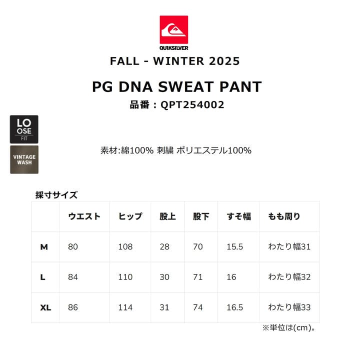 QUIKSILVER PG DNA SWEAT PANT QPT254002 パンツ スウェット ルーズフィット ロング丈 ピグメント加工 バックポケット 裏毛 刺? ロゴ クイックシルバー 正規品
