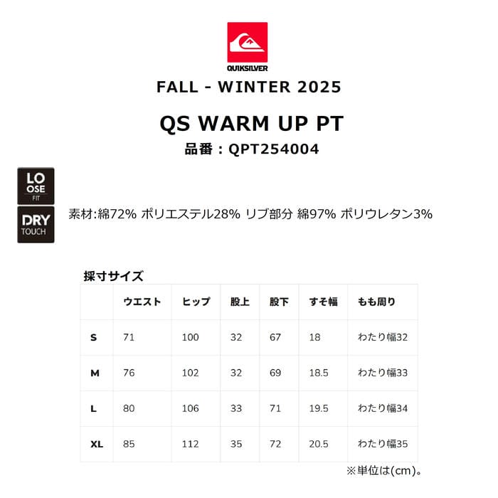 QUIKSILVER QS WARM UP PT QPT254004 トラックパンツ ルーズフィット ドライタッチ ロング丈 ジャージ生地 ドローコード 切り替え ロゴ クイックシルバー 正規品