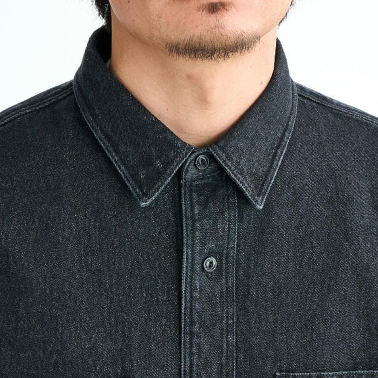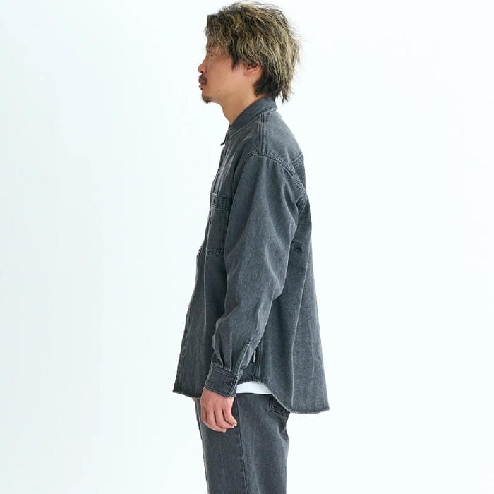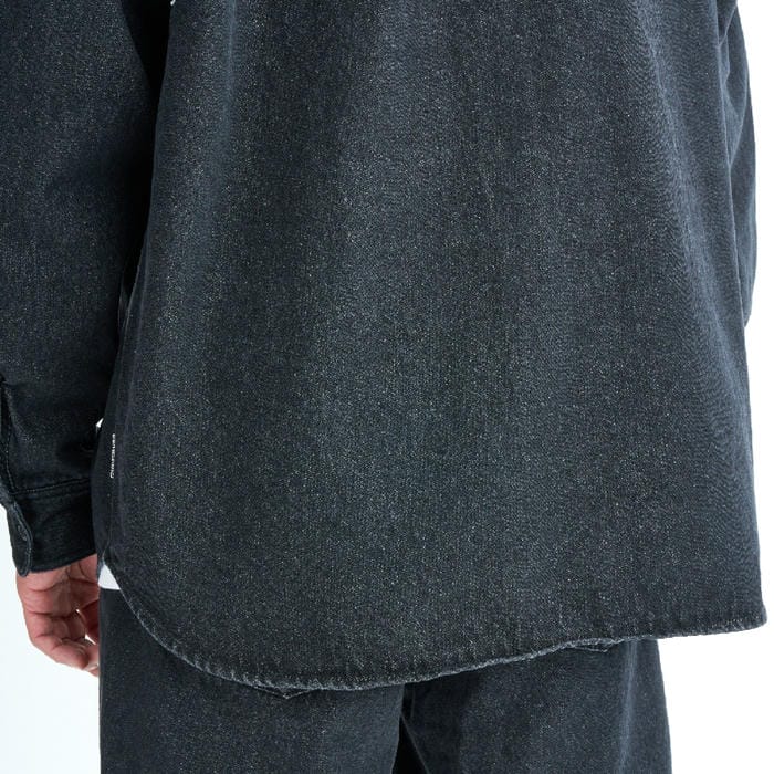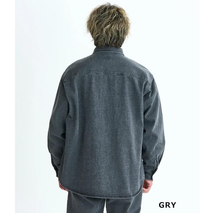 定価:9900+(税)サイズM , L , XLカラーGRY , BLK概要シャツとしては10.5オンスでしっかりとした着心地のデニム素材。BLKは着るほどに味わいが増すワンウォッシュ加工、GRYはユーズド感を演出するウォッシュ加工を施しました。左胸ポケットとバック左脇のバブルロゴ刺繍がポイント。一枚ではもちろんレイヤードもしやすいアイテムです。程良くゆとりのある拘りのルーズシルエットも特徴です。同素材のPANTSとセットアップとして着用出来るアイテムです。素材綿100%