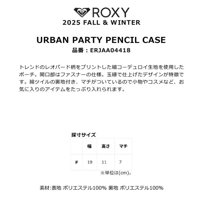 ROXY URBAN PARTY PENCIL CASE ERJAA04418 コスメポーチ レオパード柄 細コーデュロイ生地 ファスナートップ ペンケース ステーショナリー ロゴ ロキシー 正規品