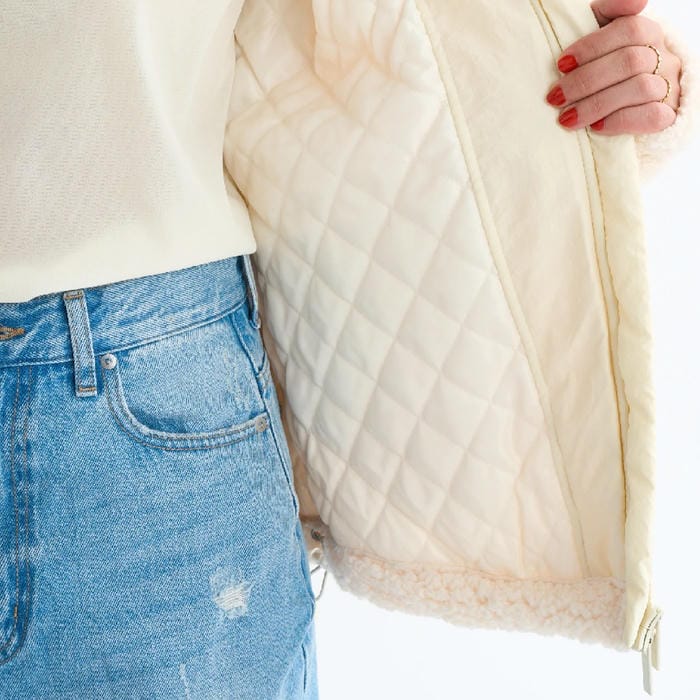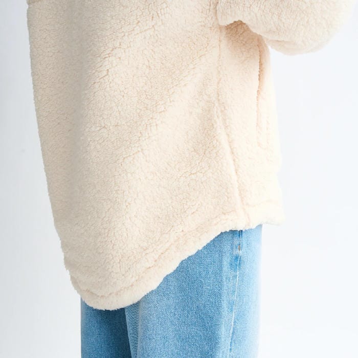 定価:10000+(税)サイズS , M , LカラーMOC , GRN , COR , BLK , NAT概要撥水加工を施した生地が特徴のボアジャケット。中綿を入れ、裏地はキルトステッチで仕上げました。胸元にはオリジナルのフラワーのワッペンをあしらい、身幅と丈感がゆったりしていて、襟にボリュームがあるので、外側に折り返してアレンジするのもおすすめです!裾はラウンドのフォルムでアジャスター付きのゴムを搭載しているので、シルエットの変化を楽しめる一枚です。素材表地 ポリエステル100%