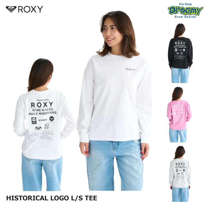 ROXY HISTORICAL LOGO L/S TEE RLT254042 ロングスリーブ Tシャツ 長袖 バックプリント クルーネック ヒストリカル ロゴ ロンT WHT BLK PNK HER ロキシー 正規品
