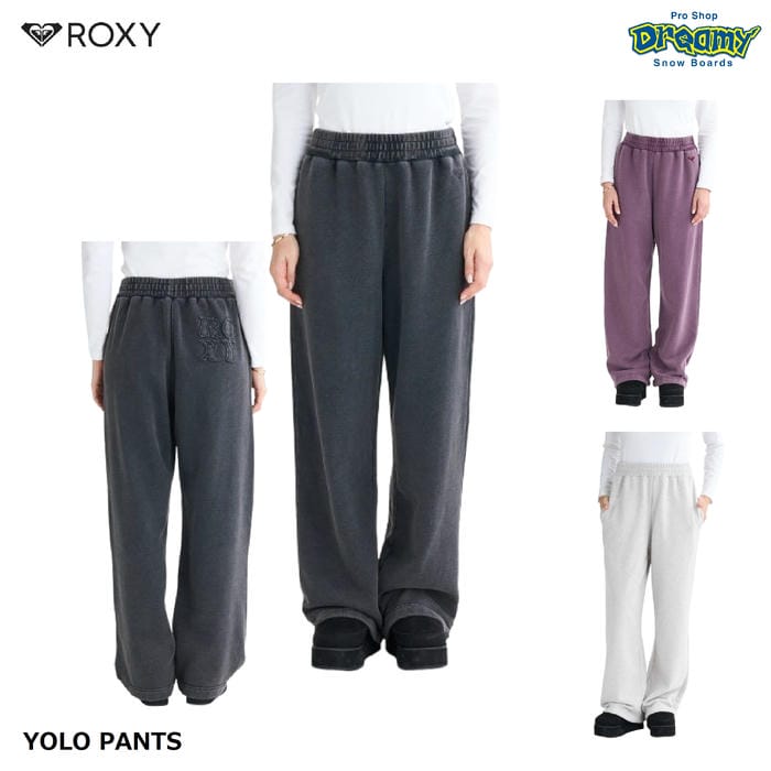 ROXY YOLO PANTS RPT254017 パンツ スウェット ロング丈 ウォッシュ加工 サイドポケット ウエストゴム仕様 ドローコード パッチワーク ロゴ ロキシー 正規品