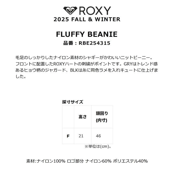 ROXY FLUFFY BEANIE RBE254315 ビーニー シャギー ナイロン素材 ヒョウ柄 ラメ 刺繍 ロゴ ニットキャップ ロキシー 正規品