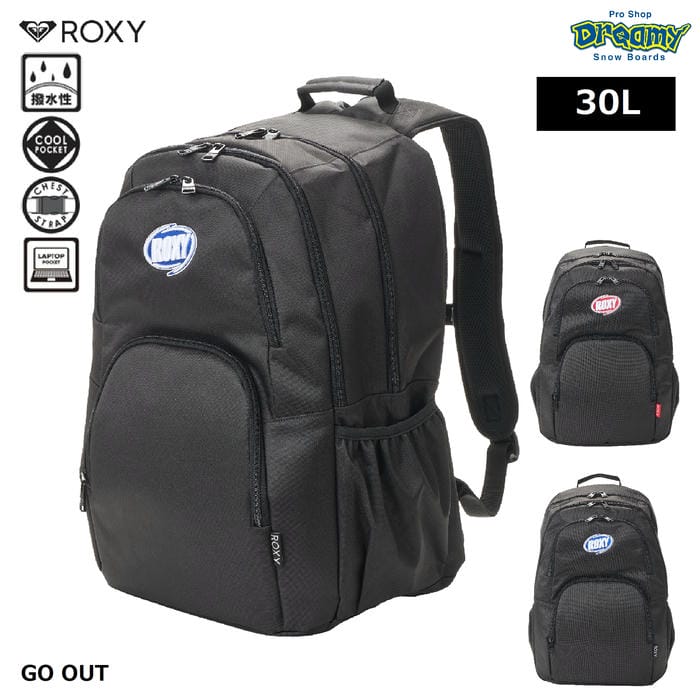ROXY GO OUT RBG254301 バックパック 30L 撥水加工 クールポケット チェストストラップ ラップトップスリーブ フロントポケット 立体刺? ロゴ ロキシー 正規品