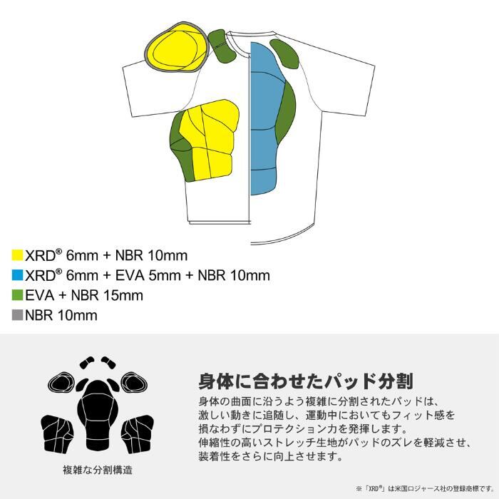 鎧武者 ヨロイムシャ ボディプロテクター XRD BK YM-1739レイヤリングパッド 最大レイヤー数3層+3Dメッシ 使用