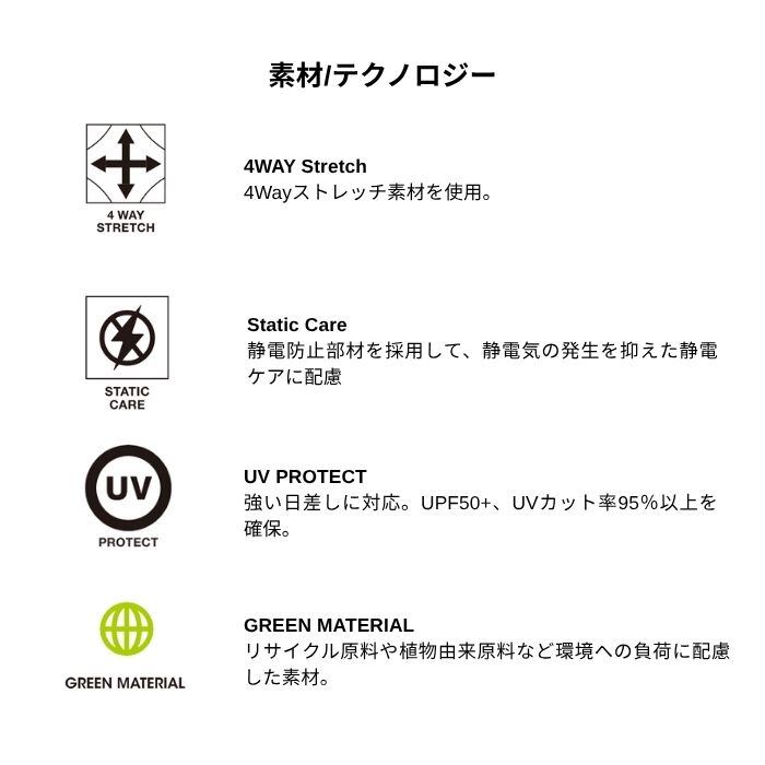 素材には、ふわっとした起毛感あるフリースを採用。しなやかな風合いで軽やかな着心地です。右後ろには目立ちにくいコンシールファスナーポケットを装備。UVプロテクト(UPF50+、紫外線カット率95%以上)付きで、強い日差しにも対応します。