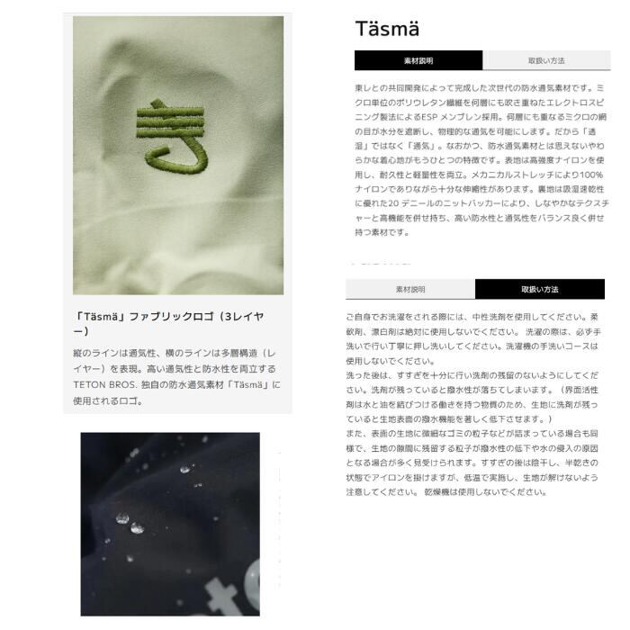TETONBROS ティートンブロス TB JKT ティービージャケット TB253-010603 BLK スノーウェア 50D×2 Tasma タスマ SNOW