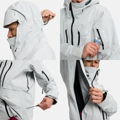 全体的にウェイトを抑えたミニマルなデザインながら、ラップの合間に手を温めるための大きなポケット、スキントラックで通気性を確保する脇のベント、ジャケットとパンツをつなぐインターフェイス付きの取り外し可能なウエストゲーター、パワーメッシュリストゲーター、耐水ジップ、悪天候下でのライディングに対応する調節可能なフードといった主要な機能を備えています。