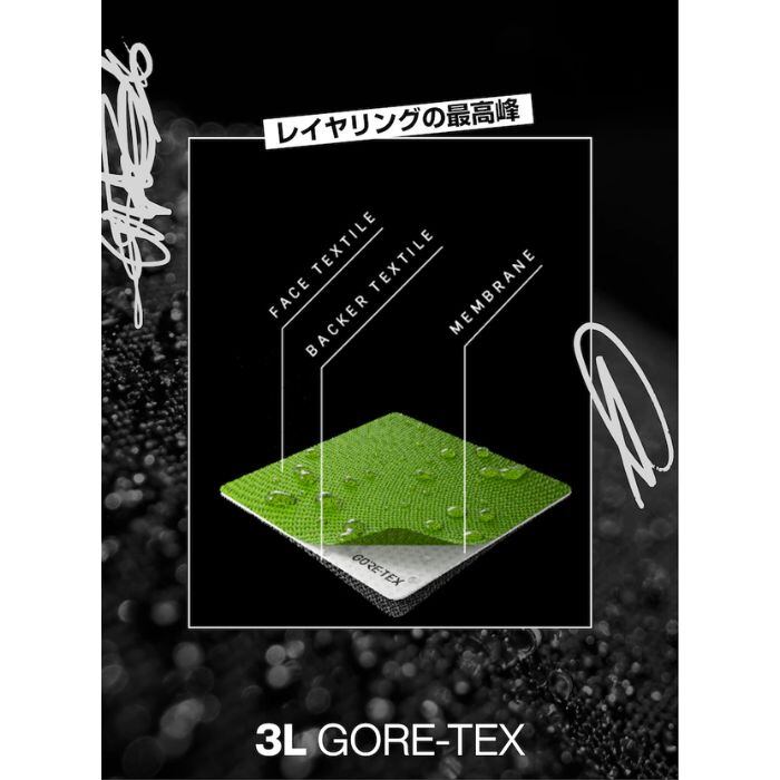 GUARANTEED TO KEEP YOU DRY? GORE-TEX 3Lは、2L GORE-TEX素材よりも軽量でありながら、防水性、防風性、透湿性、耐久性に優れ、どんな天候や時間帯でも、ライディングを続行することができます。