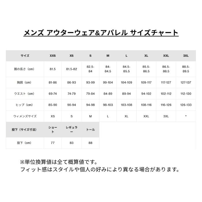 bluesign認証製品では、責任を持って生産およびリサイクルされた素材やPFCフリーの撥水加工を使用することで、生産工程での人や地球への負担を削減しています。スペック・フィット:リラックスフィット