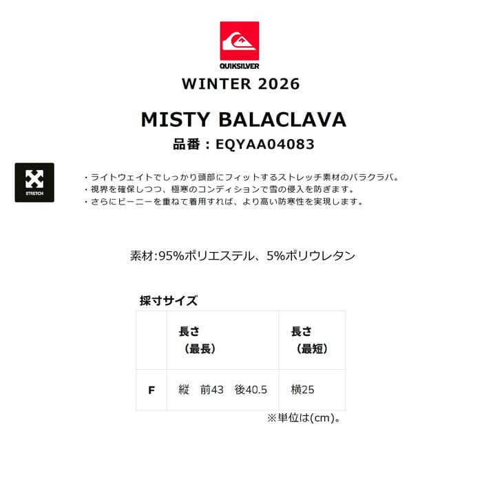 QUIKSILVER MISTY BALACLAVA EQYAA04083 バラクラバ ストレッチ フェイスカバー 防寒 フリーサイズ ロゴ ネックウォーマー 目出し帽 クイックシルバー 正規品