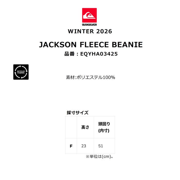 QUIKSILVER JACKSON FLEECE BEANIE EQYHA03425 ビーニー ライトフリース リサイクル素材 フリーサイズ ワッペン ロゴ スノーボード クイックシルバー 正規品