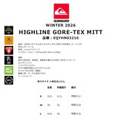 QUIKSILVER HIGHLINE GORE-TEX MITT EQYHN03210 スノーミトングローブ ロングフィット ゴアテックス タッチパネル対応 スノーボード クイックシルバー 正規品