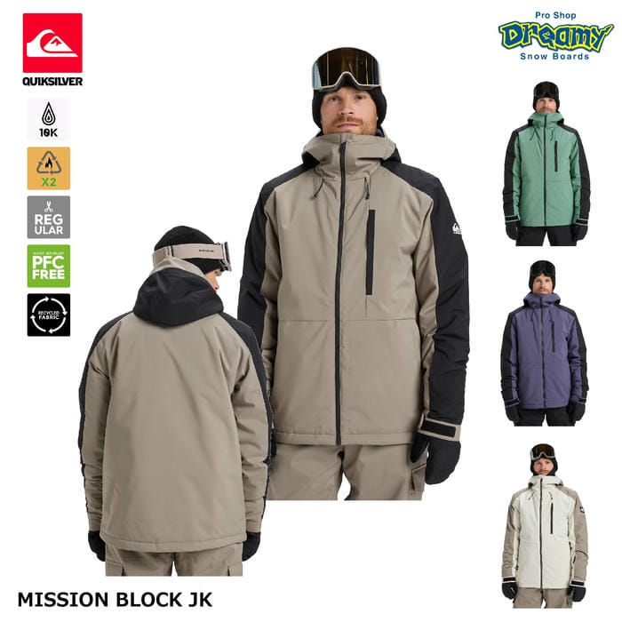 QUIKSILVER MISSION BLOCK JK EQYTJ03501 スノージャケット レギュラーフィット 防水 撥水 起毛裏地 ヘルメット対応フード ロゴ クイックシルバー 正規品