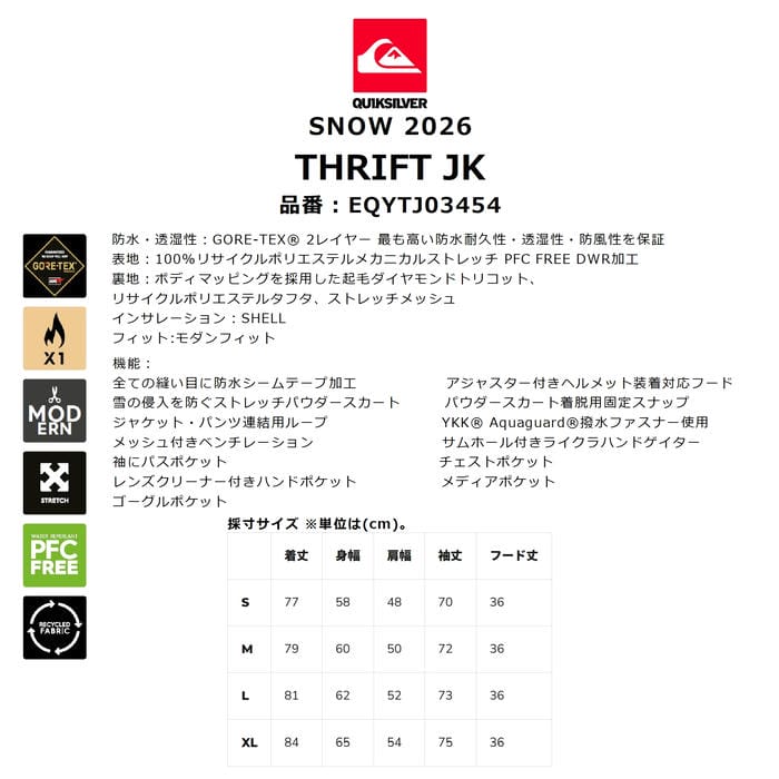QUIKSILVER PRO PATH GORE-TEX 2L EQYTJ03508 スノージャケット モダンフィット ゴアテックス ストレッチ 防水 防風 撥水 ロゴ クイックシルバー 正規品