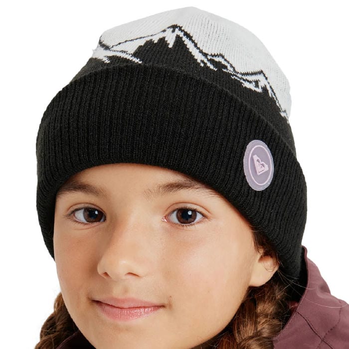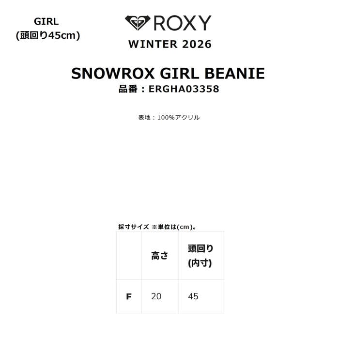 ROXY SNOWROX GIRL BEANIE ERGHA03358 キッズ ビーニー 頭回り45cm 折り返し ダブルレイヤー ジャガード織り ロゴ ニットキャップ スノーボード ロキシー 正規品