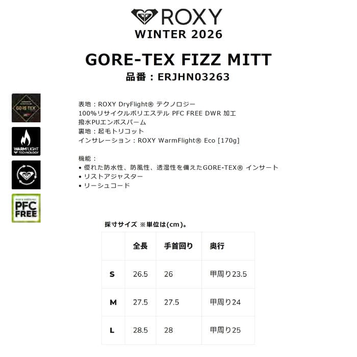 ROXY GORE-TEX FIZZ MITT ERJHN03263 スノーミトングローブ ゴアテックス 防水 撥水 リストアジャスター リーシュコード スノーボード ロゴ ロキシー 正規品